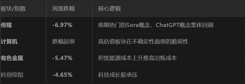 小结:上周的涨跌榜,本质上是一张“压力测试成绩单”。那些依赖远期现金流、估值偏高的成长股,在外部冲击下最先承压;而那些有实物资产支撑、有稳定分红、或直接受益于冲突的资源品,则表现出较强的韧性。