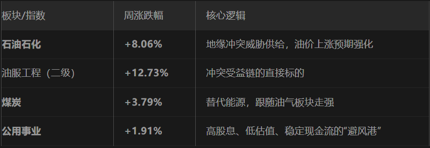 ⚠️ 风险提示:这类资产受期货价格波动和新闻头条的直接影响,波动极大。它们是典型的“高风险防御”,更适合交易型资金而非长期配置型资金。上周五中国石油下跌3.07%,便是油价随情绪修复而回落的例证。